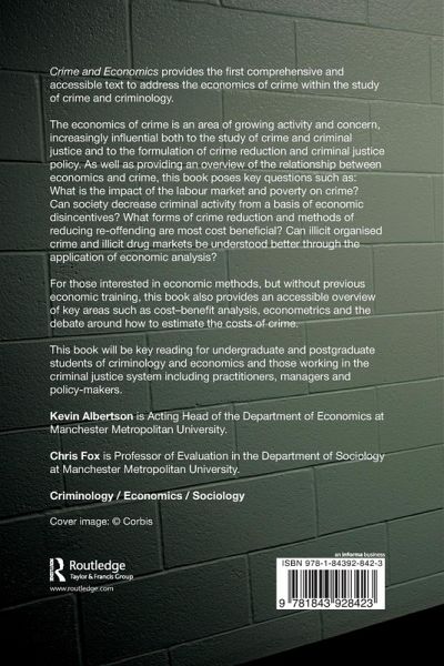 Crime and Economics provides the first comprehensive and accessible text to address the economics of crime within the study of crime and criminology. The economics of crime is an area of growing activity and concern, increasingly influential both to the study of crime and criminal justice and to the formulation of crime reduction and criminal justice policy. As well as providing an overview of the relationship between economics and crime, this book poses key questions such as: What is the impact of the labour market and poverty on crime? Can society decrease criminal activity from a basis of economic disincentives? What forms of crime reduction and methods of reducing re-offending are most cost beneficial? Can illicit organised crime and illicit drug markets be understood better through the application of economic analysis? For those interested in economic methods, but without previous economic training, this book also provides an accessible overview of key areas such as cost-benefit analysis, econometrics and the debate around how to estimate the costs of crime. This book will be key reading for undergraduate and postgraduate students of criminology and economics and those working in the criminal justice system including practitioners, managers and policy makers.