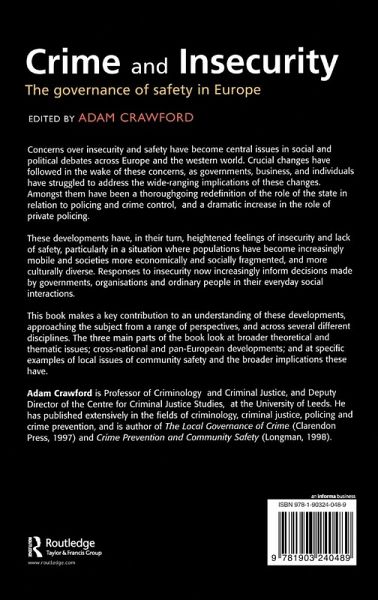 This book makes a key contribution to an understanding of recent developments in security and safety, approaching the subject from a range of perspectives, across several different disciplines. It looks at broader theoretical and thematic issues, cross-national and pan-European developments and debates in European governance, and finally explores specific examples of local issues of community safety and the broader implications these have.