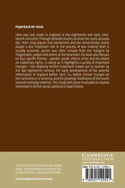 How was law made in England in the eighteenth and early nineteenth centuries? Through detailed studies of what the courts actually did, Peter King argues that parliament and the Westminster courts played a less important role in the process of law making than is usually assumed. Justice was often remade from the margins by magistrates, judges and others at the local level. His book also focuses on four specific themes - gender, youth, violent crime and the attack on customary rights. In doing so it highlights a variety of important changes - the relatively lenient treatment meted out to women by the late eighteenth century, the early development of the juvenile reformatory in England before 1825, i.e. before similar changes on the continent or in America, and the growing intolerance of the courts towards everyday violence. This study is invaluable reading to anyone interested in British political and legal history.