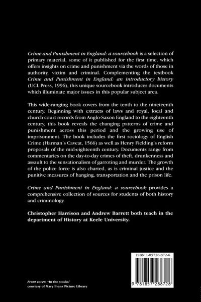 Designed to complement "Crime and Punishment: An Introductory History" UCL Press, 1996, this sourcebook contains documents specifically selected to illuminate major issues raised in the textbook. In the first part of the book, extracts of laws and royal, local and church records from Anglo- Saxon England to the 18th century reveal changing patterns of crime and punishment. The first sociology of English crime Harman's Caveat, 1566 as well as Henry Fielding's reform proposals of the mid-eighteenth century are included and the growing use of imprisonment is reflected in the later sections.; The second part covers the 19th century. Documents range from commentaries on the day-to-day crimes of theft, drunkenness And Assault To The Sensationalism Of Garroting And Murder. Documents charting the impressive growth of the police force are included. Criminal justice is approached through the minutiae of police charge books and newspaper column's, the personal reminiscences of magistrates, the sweeping arguments of law reformers and the pleading voices of Petitioners For Mercy. In A Chapter On Punishment, The Emotions Unleashed by public hanging and transportation can be compared with the relentless monotony of prison life.