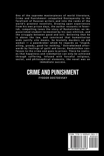 Do you want to read Crime and Punishment? If so then keep reading... One of the supreme masterpieces of world literature, Crime and Punishment catapulted Dostoyevsky to the forefront of Russian writers and into the ranks of the world's greatest novelists. Drawing upon experiences from his own prison days, the author recounts in feverish, compelling tones the story of Raskolnikov, an impoverished student tormented by his own nihilism, and the struggle between good and evil. Believing that he is above the law, and convinced that humanitarian ends justify vile means, he brutally murders an old woman - a pawnbroker whom he regards as "stupid, ailing, greedy...good for nothing." Overwhelmed afterwards by feelings of guilt and terror, Raskolnikov confesses to the crime and goes to prison. There he realizes that happiness and redemption can only be achieved through suffering. Infused with forceful religious, social, and philosophical elements, the novel was an immediate success. What are you waiting for Crime and Punishment is one click away, select the "Buy Now" button in the top right corner NOW!