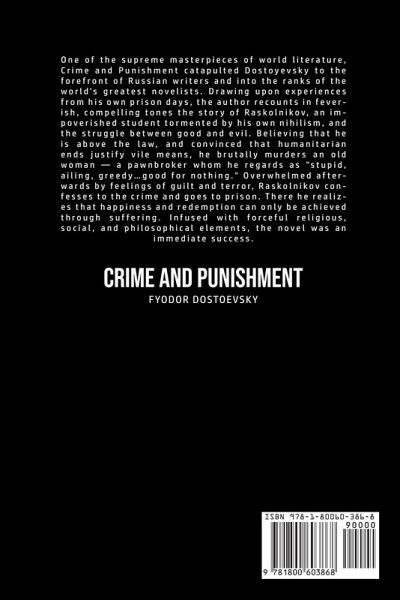 Do you want to read Crime and Punishment? If so then keep reading... One of the supreme masterpieces of world literature, Crime and Punishment catapulted Dostoyevsky to the forefront of Russian writers and into the ranks of the world's greatest novelists. Drawing upon experiences from his own prison days, the author recounts in feverish, compelling tones the story of Raskolnikov, an impoverished student tormented by his own nihilism, and the struggle between good and evil. Believing that he is above the law, and convinced that humanitarian ends justify vile means, he brutally murders an old woman - a pawnbroker whom he regards as "stupid, ailing, greedy...good for nothing." Overwhelmed afterwards by feelings of guilt and terror, Raskolnikov confesses to the crime and goes to prison. There he realizes that happiness and redemption can only be achieved through suffering. Infused with forceful religious, social, and philosophical elements, the novel was an immediate success. What are you waiting for Crime and Punishment is one click away, select the "Buy Now" button in the top right corner NOW!