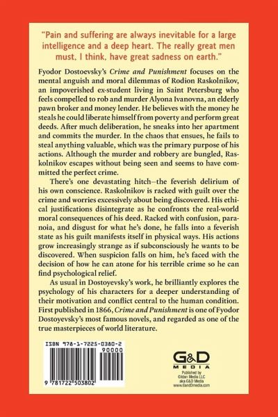 Fyodor Dostoevsky's Crime and Punishment focuses on the mental anguish and moral dilemmas of Rodion Raskolnikov, an impoverished ex-student living in Saint Petersburg who feels compelled to rob and murder Alyona Ivanovna, an elderly pawn broker and money lender.