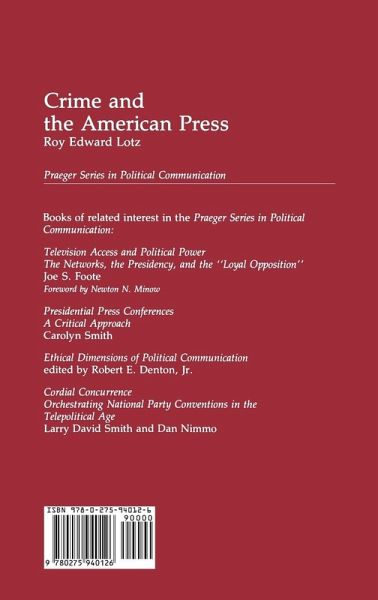 In this study of many mainstream newspapers, Roy Edward Lotz investigates the ample space American papers devote to crime. He also examines the justifications and criticisms this phenomenon has generated. Lotz finds that 30 percent of the front-page stories contain tales of police, courts, and criminals. He concludes that crime reporting neither serves the functions nor has the negative effects that are often attributed to it. Lotz discusses the functions and dysfunctions of crime reporting, the ideological biases of crime news, and the balance between coverage of explosive events and the less dramatic news of courts and prisons. In the beginning, he analyzes the front pages of four mainstream newspapers: the Chicago Tribune, the Los Angeles Times, the Philadelphia Inquirer and the New Orleans Times-Picayune. Lotz finds that coverage of courts and prisons has been more thorough and unbiased than expected. This highly readable book is of interest to journalists and specialists in crime, politics, public opinion, and mass communication.