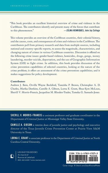 This volume provides an overview of the Caribbean countries, its colonial history, causes, costs and consequences of crime and violence in the Caribbean. The contributors pull from primary research and the available data from multiple sources including national and country specific reports to assess the magnitude, characteristics, and the changing nature of crimes in various Caribbean countries. Discussion is offered on the following crime issue: gender-based violence, homicides, drugs, gangs, money laundering, murder suicided, deportation and the use of Geographic Information System (GIS) to fight crime. In addition, the book provides a discussion of the crime prevention capabilities of selected countries looking at the nature of the crime problem, offers an assessment of the crime prevention capabilities and makes suggestions for policy development.