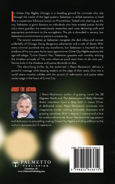 Unleash Justice in the Heart of Crime - A Gripping Thriller of Redemption and Retribution! In the heart-pounding pages of Crime City Nights, Sabastian, a skilled operative, emerges as Chicago's anonymous avenger against crime. Hired by Prometheus, a mysterious billionaire, to cleanse the city of its criminal underbelly, Sabastian is armed with meticulous dossiers on those who have escaped legal consequences. As the line between morality and revenge blurs, he plunges into the city's shadows, weaving through a web of corruption, redemption, and the relentless pursuit of justice. Razor-Backstrom's electrifying narrative explores the consequences of crime and the price of seeking justice in the gritty streets of Chicago. Sabastian's journey unfolds with heart-pounding intensity, challenging the notion of crime's consequences and delivering a powerful message that resonates long after the final page. Amidst the pulse-racing action, readers witness Sabastian navigating the moral labyrinth of his mission, confronting the unrelenting karma that binds the city. As the suspense builds, secrets are unraveled, and the city's dark past comes to light. Will justice prevail, or will the city's darkness consume its would-be savior? Crime City Nights promises an adrenaline-fueled ride, exploring the thin line between right and wrong in the pursuit of justice. Prepare for a thrilling journey through the urban jungle, where every decision carries consequences, and the city's shadows hold the key to redemption.