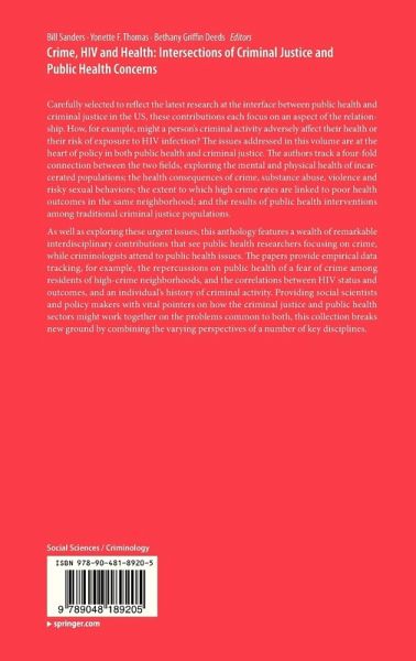 "Crime, HIV and Health: Intersections of Criminal Justice and Public Health Concerns is a very welcome addition to the literature. Edited by Bill Sanders, Yonette Thomas and Bethany Deeds, the volume examines the nodes where public health and criminal justice meet. By focusing on drug use, risky sexual behavior, HIV, violence, and delinquency, the chapters in this book illustrate the convergences and divergences between the two perspectives. It is clear that criminal justice has a good deal to learn from public health, and public health in turn can benefit from paying attention to research and practice in criminal justice. The Sanders, Thomas and Deeds volume goes a long way toward defining the way that these two perspectives can work together. This book is required reading for all who want an understanding of how public health and criminal justice can be successfully integrated and form the basis for a successful response to the most pressing social issues of our time." -- Scott H. Decker, Foundation Professor and Director of the School of Criminology and Criminal Justice at Arizona State University.