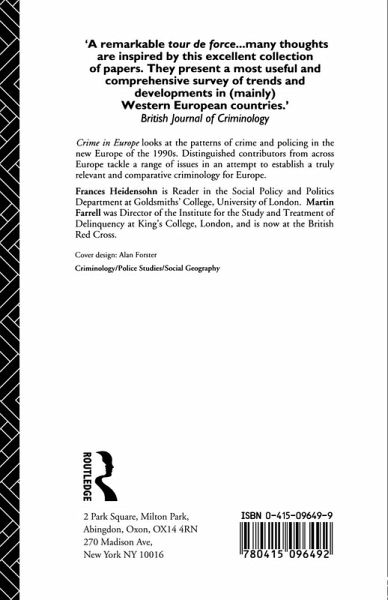 Crime in Europe looks at the patterns of crime and policing in the new Europe of the 1990s. The contributors tackle a wide range of issues in an attempt to establish a truly comparative and relevant criminology for Europe.