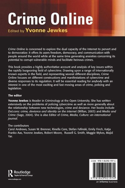 Crime Online is concerned to explore the dual capacity of the Internet to pervert and to democratize: it offers its users freedom, democracy, and communication with people around the world while at the same time generating anxieties concerning its potential to corrupt vulnerable minds and facilitate heinous crimes. This book provides a highly authoritative account and analysis of key issues within the rapidly burgeoning field of cybercrime. Drawing upon a range of internationally known experts in the field, and representing several different disciplines, Crime Online focuses on different constructions and manifestations of cybercrime and diverse responses to its regulation. It will be essential reading for anybody with an interest in one of the most exciting and fast moving areas of crime, policing and legislation.