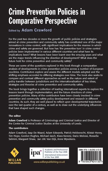 The book brings together a collection of leading international experts to explore, through a comparative analysis, the lessons learnt through implementation and the future directions of crime prevention policies.