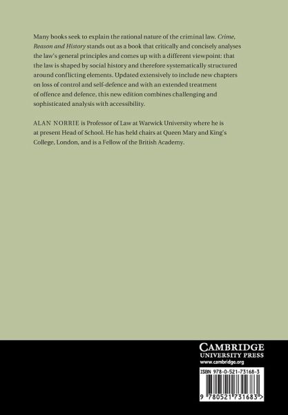 Many books seek to explain the general principles of the criminal law. Crime, Reason and History stands out and alone as a book that critically and concisely analyses these principles and comes up with a different viewpoint: that the law is shaped by social history and therefore systematically structured around conflicting elements. Updated extensively to include two new chapters on loss of control and self defence and with an extended treatment of offence and defence, this new edition combines challenging and sophisticated analysis with accessibility.