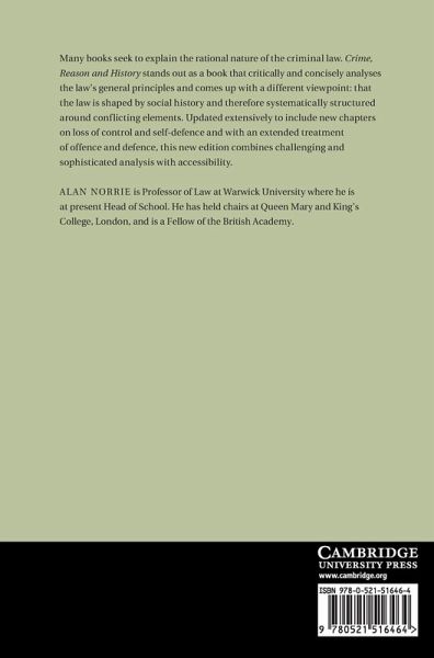 Many books seek to explain the general principles of the criminal law. Crime, Reason and History stands out and alone as a book that critically and concisely analyses these principles and comes up with a different viewpoint: that the law is shaped by social history and therefore systematically structured around conflicting elements. Updated extensively to include two new chapters on loss of control and self defence and with an extended treatment of offence and defence, this new edition combines challenging and sophisticated analysis with accessibility.