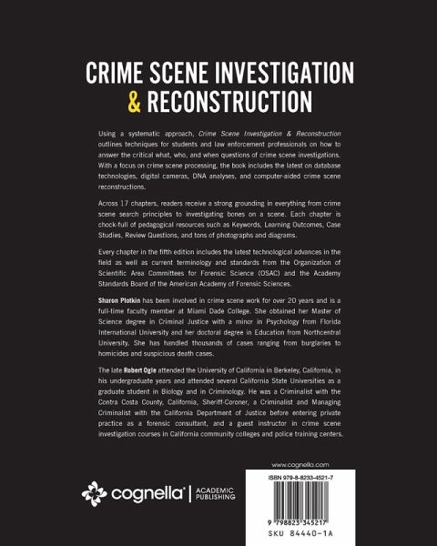 Using a systematic approach, Crime Scene Investigation & Reconstruction outlines techniques for students and law enforcement professionals on how to answer the critical what, who, and when questions of crime scene investigations. With a focus on crime scene processing, the book includes the latest on database technologies, digital cameras, DNA analyses, and computer-aided crime scene reconstructions. Across 17 chapters, readers receive a strong grounding in everything from crime scene search principles to investigating bones on a scene. Each chapter is chock-full of pedagogical resources such as Keywords, Learning Outcomes, Case Studies, Review Questions, and tons of photographs and diagrams. Every chapter in the fifth edition includes the latest technological advances in the field as well as current terminology and standards from the Organization of Scientific Area Committees for Forensic Science (OSAC) and the Academy Standards Board of the American Academy of Forensic Sciences.