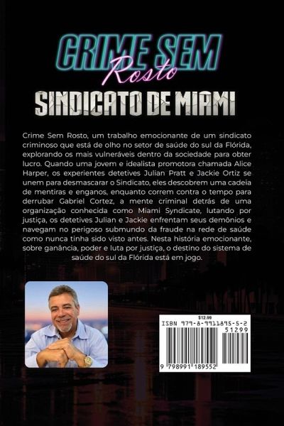 Miami é classificada como a número um em fraudes na área da saúde. Existem mais de US $ 2 bilhões de dólares em golpes todos os anos. Esses são esquemas de crimes reais que acontecem todos os dias. "Crime Sem Rosto" é um retrato fictício emocionante da questão do crime real da fraude do Medicaid em Miami. O romance destaca uma cidade atormentada por fraudadores astutos que desviam bilhões de dólares do sistema de saúde. Segue a promotora determinada Alice Harper e os detetives experientes Julian Pratt e Jackie Ortiz enquanto conduzem a investigação pelas profundezas obscuras do setor de saúde do sul da Flórida. Seu alvo: o Miami Syndicate, liderado pelo esquivo Gabriel Cortez. Através de um labirinto de enganos, a equipe enfrenta inúmeras batalhas, navegando nas perigosas águas da corrupção. Essa narrativa não apenas entretém, mas também ilumina as complexidades do combate à fraude na saúde, destacando a coragem e a tenacidade necessárias para desafiar o status quo e proteger os mais vulneráveis da sociedade.