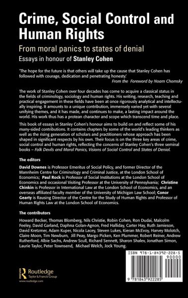 The work of Stanley Cohen over four decades has come to acquire a classical status in the fields of criminology, sociology, and human rights. His writing, research, teaching, and practical engagement in these fields have been rigorously analytical and intellectually inspiring. It amounts to a unique contribution, immensely varied yet with several unifying themes, having made and continuing to make a lasting impact around the world. His work thus has a protean character and scope which transcend time and place. This book of essays in Stanley Cohen's honor builds upon and reflects some of his many-sided contributions. Crime, Social Control and Human Rights with the Forward by Noam Chomsky contains chapters by some of the world's leading thinkers as well as the rising generation of scholars and practitioners whose approach has been shaped in significant respects by Stanley Cohen. The book examines the main themes Stanley Cohen has explored and developed.