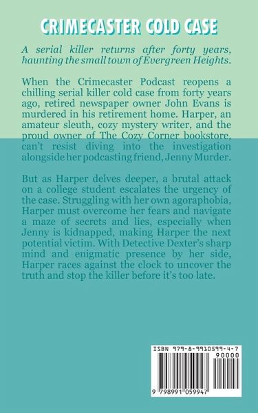Crimecaster Cold Case: A Christian Cozy Mystery in the Pursuit of a Serial Killer Cozy Corner Mysteries Book 2 by Kathleen GuireA serial killer returns after forty years, haunting the peaceful town of Evergreen Heights. When the Crimecaster podcast reopens a chilling cold case, retired newspaper owner John Evans is found murdered in his retirement home-just days after agreeing to share what he knew. Harper, cozy mystery writer, bookstore owner, and reluctant sleuth, is pulled into the case by her fearless podcasting friend, Jenny Murder. As a brutal attack on a college student shocks the town, Harper's instincts-and her sense of justice-drive her deeper into a decades-old mystery. But this case is more than a puzzle. Jenny is kidnapped, and Harper realizes she could be next. Struggling with agoraphobia, Harper must push past her fears and follow the clues through a web of secrets and small-town lies. With Detective Dexter at her side, their partnership becomes more than just investigative. Together, they must stop a killer determined to stay buried. Crimecaster Cold Case is a heart-racing Christian cozy mystery filled with suspense, small-town charm, and a slow-burn romance. Perfect for fans of clean mysteries, dog-loving sleuths, serial killer cold cases, and faith-friendly fiction with edge-of-your-seat thrills.