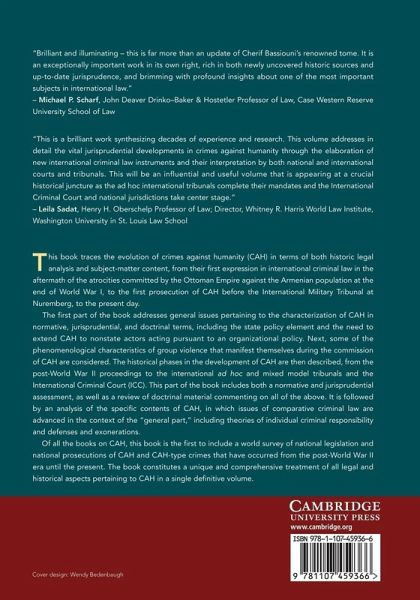 This book traces the evolution of crimes against humanity (CAH) and their application from the end of World War I to the present day, in terms of both historic legal analysis and subject-matter content. The first part of the book addresses general issues pertaining to the categorization of CAH in normative jurisprudential and doctrinal terms. This is followed by an analysis of the specific contents of CAH, describing its historic phases going through international criminal tribunals, mixed model tribunals and the International Criminal Court. The book examines the general parts and defenses of the crime, along with the history and jurisprudence of both international and national prosecutions. For the first time, a list of all countries that have enacted national legislation specifically directed at CAH is collected, along with all of the national prosecutions that have occurred under national legislation up to 2010.