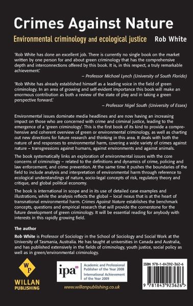 This book draws upon the disciplines of environmental studies, environmental sociology and environmental management as well as criminology and socio-legal studies, to provide a systematic account and analysis of the key concerns of green criminology.