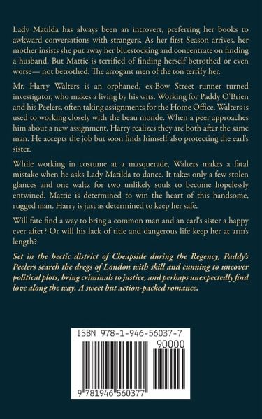 Lady Matilda has always been an introvert, preferring her books to awkward conversations with strangers. As her first Season arrives, her mother insists she put away her bluestocking and concentrate on finding a husband. But Mattie is terrified of finding herself betrothed or even worse- not betrothed. The arrogant men of the ton terrify her. Mr. Harry Walters is an orphaned, ex-Bow Street runner turned investigator, who makes a living by his wits. Working for Paddy O'Brien and his Peelers, often taking assignments for the Home Office, Walters is used to working closely with the beau monde. When a peer approaches him about a new assignment, Harry realizes they are both after the same man. He accepts the job but soon finds himself also protecting the earl's sister. While working in costume at a masquerade, Walters makes a fatal mistake when he asks Lady Matilda to dance. It takes only a few stolen glances and one waltz for two unlikely souls to become hopelessly entwined. Mattie is determined to win the heart of this handsome, rugged man. Harry is just as determined to keep her safe. Will fate find a way to bring a common man and an earl's sister a happy ever after? Or will his lack of title and dangerous life keep her at arm's length? Set in the hectic district of Cheapside during the Regency, Paddy's Peelers search the dregs of London with skill and cunning to uncover political plots, bring criminals to justice, and perhaps unexpectedly find love along the way. A sweet but action-packed romance.