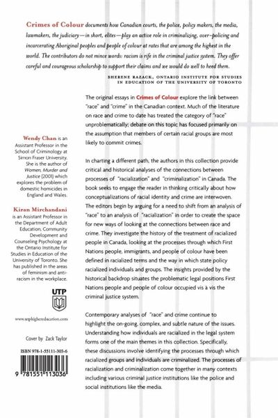 "The contributors do not mince words: racism is rife in the criminal justice system. They offer careful and courageous scholarship to support their claims and we would do well to heed them." - Sherene Razack, University of Toronto