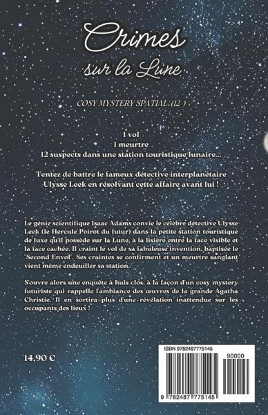 Êtes-vous prêt à embarquer dans un roman policier futuriste où chaque détail compte et à faire chauffer vos petites cellules grises ? Un décor somptueux, un crime imminent... Bienvenue dans l'un des lieux les plus exclusifs du système solaire. La station La Lune en Clair-Obscur accueille une poignée de vacanciers privilégiés venus savourer le calme, le confort et un décor digne des plus grands films historiques. Ici, le faste de Versailles se mêle au high-tech spatial, et les bulles du jacuzzi montent plus haut qu'ailleurs grâce à la faible gravité. Mais derrière les dorures lunaires, les secrets planent... Un crime est-il sur le point de se produire ? Ou est-ce déjà trop tard ? Une chose est sûre: vous êtes convié à l'enquête. Une énigme à résoudre... si vous l'osez !Le célèbre détective Ulysse Leek pensait profiter de vacances bien méritées. Mais très vite, les non-dits, les comportements étranges et une atmosphère pesante éveillent ses soupçons. Et les vôtres ? Chaque chapitre vous livre une pièce du puzzle. Tous les indices sont là, disséminés avec soin. Votre mission ? Les repérer, les recouper, et faire parler les silences comme les détails. Car si Ulysse Leek a du flair, vous avez, vous aussi, votre sens de l'observation et de la déduction. Saurez-vous résoudre l'énigme avant lui ? Ce polar spatial au ton élégant et subtil vous propose: * Une enquête à huis clos dans une station lunaire de luxe. * Un univers rétrofuturiste empreint de raffinement et d'ironie. * Des personnages aussi raffinés que suspects: héritiers discrets, couples trop parfaits, croyants zélés, célébrités désoeuvrées... * Des dialogues ciselés, un humour fin, et des gadgets dignes des plus belles expositions interstellaires. L'influence d'Agatha Christie se devine, mais dans un décor digne d'un rêve de Jules Verne. Tout cela sans violence gratuite, ni noirceur pesante: juste ce qu'il faut de frissons, d'espièglerie et de mystère pour ravir les amateurs d'énigmes. Et vous, saurez-vous démêler le vrai du faux ?Ulysse Leek, à la façon d'un Hercule Poirot du futur, vous observe... Serez-vous plus rapide que lui ? > Pour le savoir, ajoutez dès à présent ce roman cosy mystery d'anticipation à votre panier !