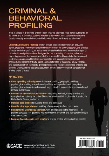 Criminal and Behavioral Profiling, by well-established authors Curt and Anne Bartol, presents a realistic and empirically-based look at the theory, research, and practice of modern criminal profiling. Designed for use in a variety of criminal justice and psychology courses, the book delves into the process of identifying behavioral tendencies, geographical locations, demographic and biographical descriptors of an offender (or offenders), and sometimes personality traits based on characteristics of the crime. Timely literature and case studies from the rapidly growing international research in criminal profiling help students understand the best practices, major pitfalls, and psychological concepts that are key to this process.