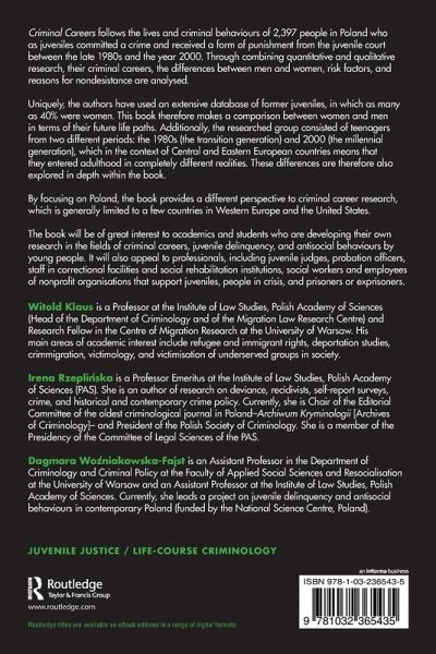 The book will be of great interest to academics and students who are developing their own research in the fields of criminal careers, juvenile delinquency, and antisocial behaviours by young people. It will also appeal to professionals, including juvenile judges, probation officers, staff in correctional facilities and social rehabilitation institutions, social workers and employees of nonprofit organisations that support juveniles, people in crisis, and prisoners or exprisoners.