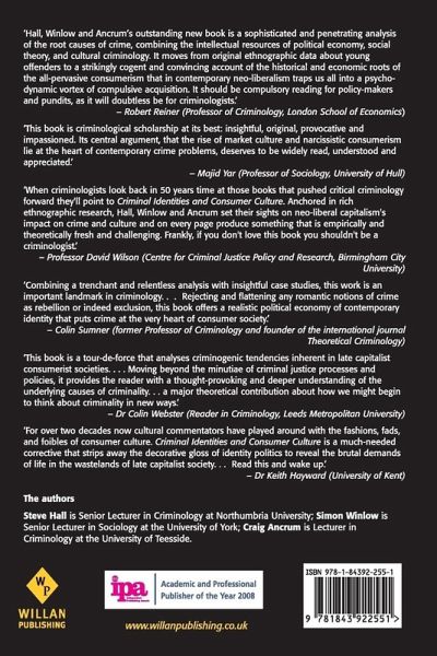 This book offers the first in-depth investigation into the relationship between today's criminal identities and consumer culture. Using unique data taken from criminals locked in areas of permanent recession, the book aims to uncover feelings and attitudes towards a variety of criminal activities, investigating the incorporation of hearts and minds into consumer culture's surrogate social world and highlighting the relationship between the lived identities of active criminals and the socio-economic climate of instability and anxiety that permeates post-industrial Britain. This book will be of interest to undergraduates, postgraduates, researchers and lecturers in all fields within the social sciences, but especially criminology, sociology, social policy, politics and anthropology.