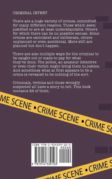 CRIMINAL INTENT There are a huge variety of crimes, committed for many different reasons. Those which seem justified or are at least understandable. Others for which there can be no possible excuse. Some crimes are calculated and deliberate, others unplanned or even accidental. More still are planned but don't happen. There are also multiple ways for the criminal to be caught out or made to pay for what they've done. The police, an amateur detective or even their victim might bring them to justice. And sometimes what at first appears to be a crime is revealed to be nothing of the sort. Criminals, victims and those wrongly suspected all have a story to tell. This book contains 24 of them.