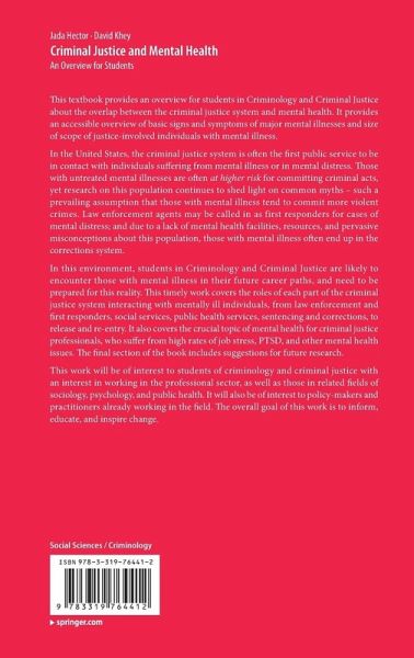 In this environment, students in Criminology and Criminal Justice are likely to encounter those with mental illness in their future career paths, and need to be prepared for this reality. This timely work covers the roles of each part of the criminal justice system interacting with mentally ill individuals, from law enforcement and first responders, social services, public health services, sentencing and corrections, to release and re-entry. It also covers the crucial topic of mental health for criminal justice professionals, who suffer from high rates of job stress, PTSD, and other mental health issues. The final section of the book includes suggestions for future research.