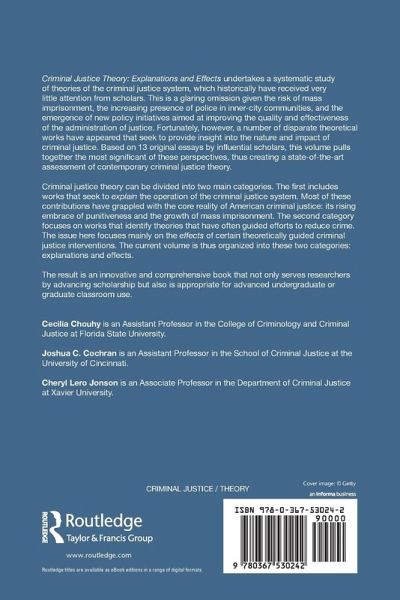 Criminal Justice Theory: Explanations and Effects undertakes a systematic study of theories of the criminal justice system, which historically have received very little attention from scholars. This is a glaring omission given the risk of mass imprisonment, the increasing presence of police in inner-city communities, and the emergence of new policy initiatives aimed at improving the quality and effectiveness of the administration of justice. Fortunately, however, a number of disparate theoretical works have appeared that seek to provide insight into the nature and impact of criminal justice. Based on 13 original essays by influential scholars, this volume pulls together the most significant of these perspectives, thus creating a state-of-the-art assessment of contemporary criminal justice theory. Criminal justice theory can be divided into two main categories. The first includes works that seek to explain the operation of the criminal justice system. Most of these contributions have grappled with the core reality of American criminal justice: its rising embrace of punitiveness and the growth of mass imprisonment. The second category focuses on works that identify theories that have often guided efforts to reduce crime. The issue here focuses mainly on the effects of certain theoretically guided criminal justice interventions. The current volume is thus organized into these two categories: explanations and effects. The result is an innovative and comprehensive book that not only serves researchers by advancing scholarship but also is appropriate for advanced undergraduate or graduate classroom use.