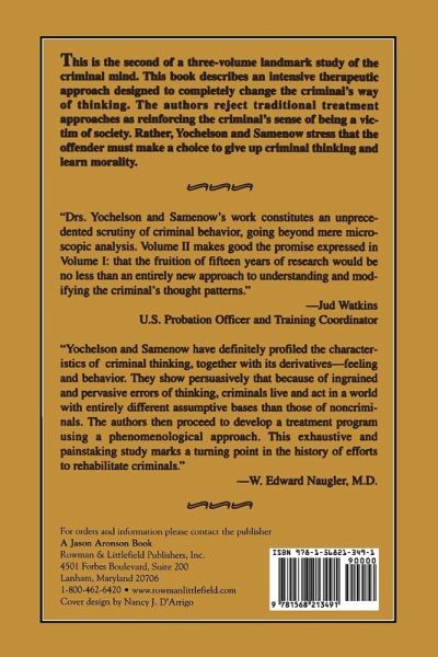 This is the second of a three volume landmark study of the criminal mind. This book describes an intensive therapeutic approach designed to completely change the criminals way of thinking. The authors reject traditional treatment approaches as reinforcing of the criminals sense of being a victim of society. Rather Yochelson and Samenow stress that the criminal must make a choice to give up criminal thinking and learn morality. A Jason Aronson Book