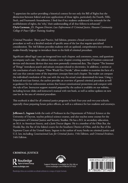 Criminal Procedure: Theory and Practice, 3rd Edition, presents a broad overview of criminal procedure as well as a detailed analysis of specific areas of the law that require specialized consideration. The third edition provides students with an updated, comprehensive text written in reader-friendly language to introduce them to the field of criminal procedure.