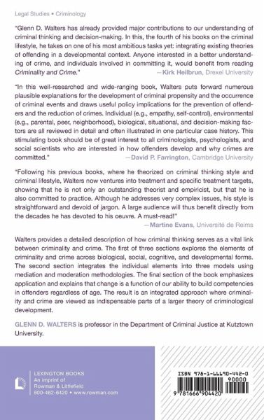 Section I Chapter 1. On Not Missing the Forest for the Trees Chapter 2. Crime, Criminality, and Human Nature Chapter 3. Social Foundations of a Criminal Lifestyle Chapter 4. Cognitive Foundations of a Criminal Lifestyle Chapter 5. Developmental Foundations of a Criminal Lifestyle Section II Chapter 6. The Moral Model of Lifestyle Criminality Chapter 7. The Control Model of Lifestyle Criminality Chapter 8. The Decision-Making Model of Crime Section III Chapter 9. Managing Criminality: Part I. Reducing Risk by Building Competencies Chapter 10. Managing Criminality: Part II. Reducing Risk by Changing Environments Chapter 11. Crime Prevention: Limiting Opportunities, Altering Incentives, and Addressing Aggravating and Mitigating Conditions Chapter 12. Returning to the Forest