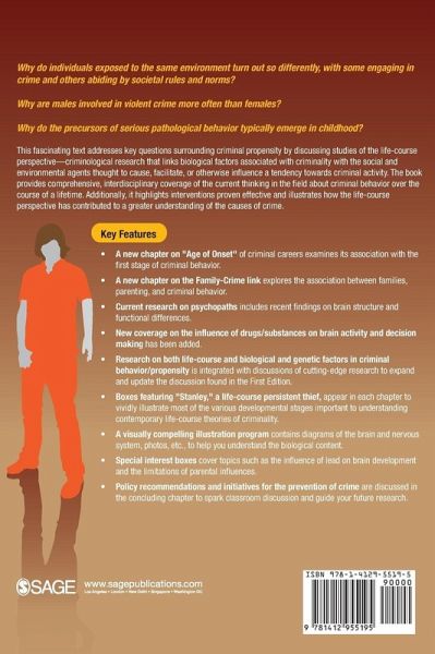 In this text, the authors examine central issues in the development of criminal propensity through studies of life-course perspective and from criminal research involving biological and genetic factors. The authors trace the origins of criminality-that is, the propensity to violate social norms and rules-from conception through birth, through childhood, adolescence, and adulthood. The authors equally discuss biological and genetic research associated with criminality, as well as discuss research into specific environmental agents that cause, facilitate, or maintain criminal propensity.