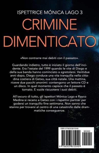 Non contrarre mai debiti con il passato. Perché il passato torna sempre a riscuotere. Estate 1999. Un tragico incidente cambia per sempre le vite di Diego e della sua banda di amici. Un segreto sepolto sotto una promessa di silenzio, la fine brusca dell'innocenza in una notte che nessuno potrà mai dimenticare. Ventidue anni dopo. Diego vive una vita tranquilla a Getxo, la sua città natale. Ma la calma si spezza quando riceve un pacco anonimo: un vecchio lettore CD e un disco che contiene l'eco del suo peggior incubo. Qualcuno sa cosa è successo quella notte. Qualcuno vuole giustizia... o vendetta. Mentre il passato bussa alla porta di Diego, gli ispettori Mónica Lago e Rayco Medina arrivano in città per un fine settimana di relax. Non sanno che stanno per essere trascinati in un vortice di eventi drammatici, dove i peccati dell'adolescenza si pagano a caro prezzo. Crimine Dimenticato è un thriller psicologico mozzafiato e nostalgico. Una storia di segreti inconfessabili e tradimenti dove le trame si intrecciano come i fili di una matassa mortale. _________________________ COSA DICONO I LETTORI: ⭐️⭐️⭐️⭐️⭐️ "I colpi di scena sono il punto forte di Santamaría. Ti tiene incollato alle pagine". ⭐️⭐️⭐️⭐️⭐️ "Un thriller che scava nell'anima. La serie di Mónica Lago è una delle migliori scoperte dell'anno". ⭐️⭐️⭐️⭐️⭐️ "Crudo, nostalgico e avvincente. Da leggere tutto d'un fiato". Nota dell'autore: Chi di noi non ha fatto qualcosa in gioventù di cui si pente? Con Crimine Dimenticato volevo esplorare il peso della colpa e come un solo istante possa definire il resto della nostra vita. Anche se Mónica e Rayco sono lontani da Madrid, il pericolo li segue ovunque. Spero che questa storia vi faccia riflettere e vi emozioni tanto quanto ha emozionato me scriverla. Dallo scrittore vincitore del Premio Literario Amazon. Sei pronto a regolare i conti con il passato?