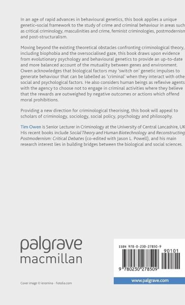 In an age of rapid advances in behavioural genetics, this book applies a unique genetic-social framework to the study of crime and criminal behaviour. Drawing upon evidence from evolutionary psychology and behavioural genetics, it offers an up-to-date and balanced account of the mutuality between genes and environment.