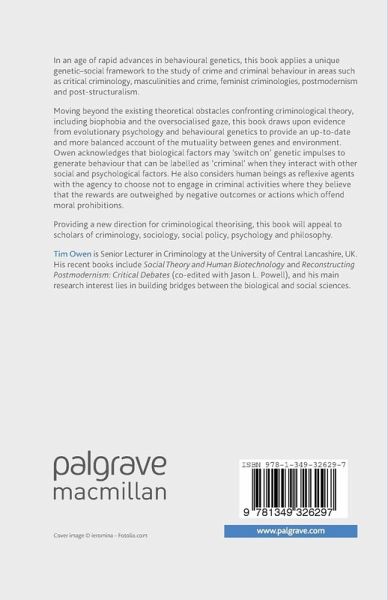 In an age of rapid advances in behavioural genetics, this book applies a unique genetic-social framework to the study of crime and criminal behaviour. Drawing upon evidence from evolutionary psychology and behavioural genetics, it offers an up-to-date and balanced account of the mutuality between genes and environment.