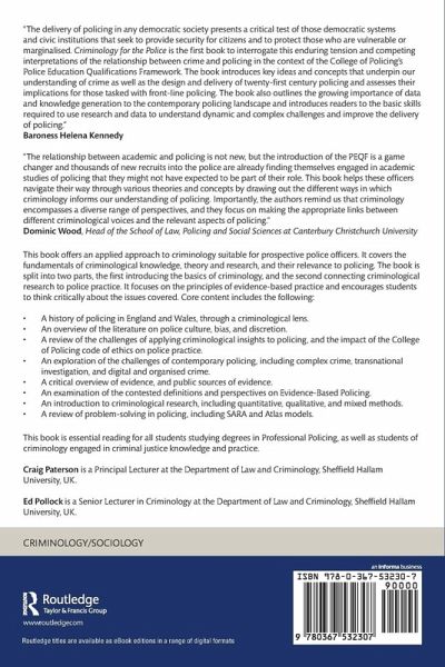 The relationship between academic and policing is not new, but the introduction of the PEQF is a game changer and thousands of new recruits into the police are already finding themselves engaged in academic studies of policing that they might not have expected to be part of their role. This book helps these officers navigate their way through various theories and concepts by drawing out the different ways in which criminology informs our understanding of policing. Importantly, the authors remind us that criminology encompasses a diverse range of perspectives, and they focus on making the appropriate links between different criminological voices and the relevant aspects of policing.