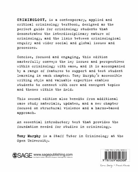 Concise, focused and engaging, this second edition masterfully conveys the key issues and perspectives within criminology with ease, and it is accompanied by a range of features to support and test student learning in each chapter. Tony Murphy's accessible writing style and valuable expertise enables students to connect with core and emergent topics and themes within the field.