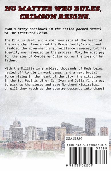 No matter who rules, crimson reigns. Ivan's story continues in the action-packed sequel to The Fractured Prism. It's been ten days since the night that shattered Ivan's hopes of ending the Prism-ten days rotting in jail. With his rebel identity exposed, he must now pay for his sins as Julia mourns the death of her father. Outside the palace walls, the situation in St. Paul is dire. The People's Front is more determined than ever to exterminate any pockets of resistance, and with the Militia in shambles after the safe house raids, thousands of Reds have been hauled off to die in the People's Fronts work camps. But resentment burns beneath the ashes. A new, brutal force has risen, one that threatens to destroy everything Ivan has fought to protect. With a void at the heart of the monarchy and their allies scattered, can Ivan and Julia find a way to pick up the pieces and save Northern Mississippi, or will they watch as chaos consumes what little hope they have left? The Prism Files continue with book 3: Pridefall.