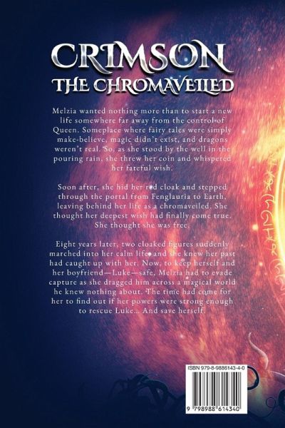 Melzia wanted nothing more than to start a new life somewhere far away from the control of Queen. Someplace where fairy tales were simply make-believe, magic didn't exist, and dragons weren't real. So, as she stood by the well in the pouring rain, she threw her coin and whispered her fateful wish. Soon after, she stepped through the portal from Fenglauria to Earth, leaving behind her life as a chromaveiled. She thought her deepest wish had finally come true. She thought she was free. Eight years later, two cloaked figures suddenly marched into her calm life, and she knew her past had caught up with her. Now, to keep herself and her boyfriend-Luke-safe, Melzia had to evade capture as she dragged him across a magical world he knew nothing about. The time had come for her to find out if her powers were strong enough to rescue Luke... And save herself. ----------------------------------------------------------------------------------- This story combines elements of portal fantasy, urban fantasy, sword and sorcery, epic fantasy, fairy tale retellings, and romance. It's told in third person, past tense. Content warnings and notes: Violence, gore, blood, and death. Romance scenes are not explicit and are fade-to-black style.