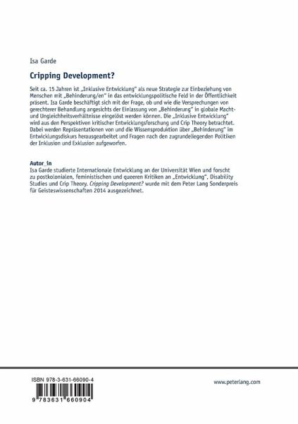 Seit ca. 15 Jahren ist "Inklusive Entwicklung" als neue Strategie zur Einbeziehung von Menschen mit "Behinderung/en" in das entwicklungspolitische Feld in der Öffentlichkeit präsent. Isa Garde beschäftigt sich mit der Frage, ob und wie die Versprechungen von gerechterer Behandlung angesichts der Einlassung von "Behinderung" in globale Macht- und Ungleichheitsverhältnisse eingelöst werden können. Die "Inklusive Entwicklung" wird aus den Perspektiven kritischer Entwicklungsforschung und Crip Theory betrachtet. Dabei werden Repräsentationen von und die Wissensproduktion über "Behinderung" im Entwicklungsdiskurs herausgearbeitet und Fragen nach den zugrundeliegenden Politiken der Inklusion und Exklusion aufgeworfen.