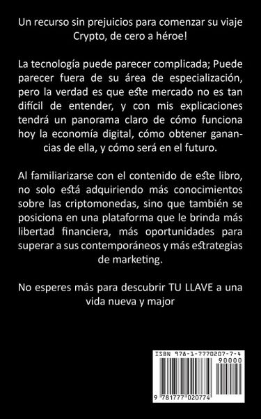 Un recurso sin prejuicios para comenzar su viaje Crypto, de cero a héroe! La tecnología puede parecer complicada; Puede parecer fuera de su área de especialización, pero la verdad es que este mercado no es tan difícil de entender, y con mis explicaciones tendrá un panorama claro de cómo funciona hoy la economía digital, cómo obtener ganancias de ella, y cómo será en el futuro. Al familiarizarse con el contenido de este libro, no solo está adquiriendo más conocimientos sobre las criptomonedas, sino que también se posiciona en una plataforma que le brinda más libertad financiera, más oportunidades para superar a sus contemporáneos y más estrategias de marketing. No esperes más para descubrir TU LLAVE a una vida nueva y major
