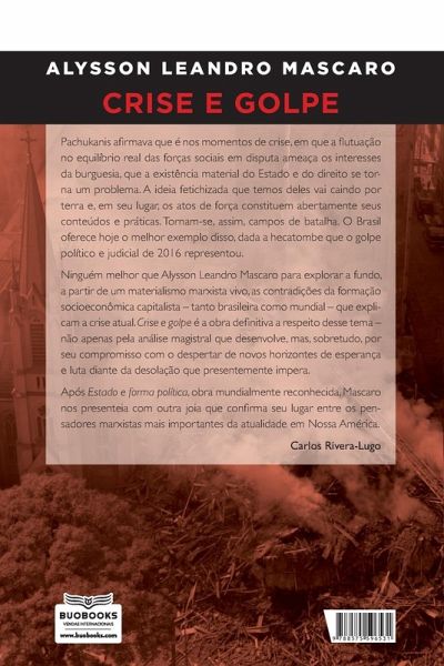 Em seu novo livro, Crise e golpe, o jurista Alysson Leandro Mascaro parte da crise político-econômica atual e do golpe em curso para destrinchar a complexa relação entre Estado, direito e formação social. Em uma interpretação original, influenciada principalmente por Evguiéni Pachukanis e Louis Althusser, o autor revela o caráter estrutural das crises e dos golpes, fundados em bases ideológicas e institucionais próprias do capitalismo.Sua análise dos juristas brasileiros e do próprio direito oferece uma nova perspectiva para o entendimento da crise. 'Tal como em 1964 não se deu apenas um golpe estritamente militar, mas um golpe de classe, também em 2016 não se dá apenas um golpe jurídico ou político, mas um golpe de classe burguesa que realinha frações dos capitais nacional e internacional para a acumulação numa situação específica de crise do capitalismo mundial e brasileiro, pós-fordista e neoliberal', diz Mascaro.Crise e golpe chega às livrarias em setembro e deve iluminar o debate eleitoral brasileiro com sua leitura da situação política dos últimos anos. Para além desse contexto, trata-se de uma leitura indispensável para compreender a fundo a dinâmica, os limites e as contradições do Estado e do direito na atualidade.