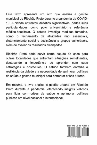 Este livro promove uma análise abrangente e minuciosa da gestão municipal de Ribeirão Preto durante o desafiador cenário da pandemia da COVID-19. Com