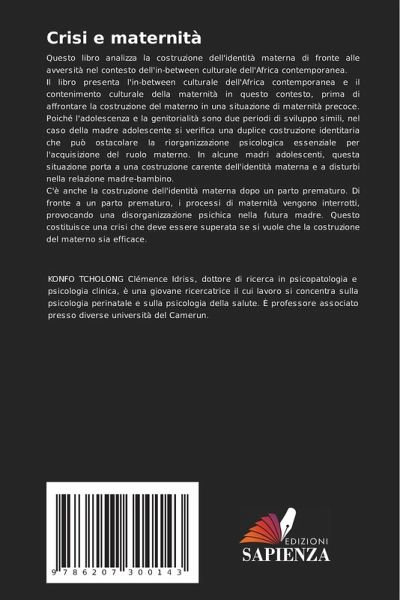 Questo libro analizza la costruzione dell'identità materna di fronte alle avversità nel contesto dell'in-between culturale dell'Africa contemporanea.Il libro presenta l'in-between culturale dell'Africa contemporanea e il contenimento culturale della maternità in questo contesto, prima di affrontare la costruzione del materno in una situazione di maternità precoce. Poiché l'adolescenza e la genitorialità sono due periodi di sviluppo simili, nel caso della madre adolescente si verifica una duplice costruzione identitaria che può ostacolare la riorganizzazione psicologica essenziale per l'acquisizione del ruolo materno. In alcune madri adolescenti, questa situazione porta a una costruzione carente dell'identità materna e a disturbi nella relazione madre-bambino.C'è anche la costruzione dell'identità materna dopo un parto prematuro. Di fronte a un parto prematuro, i processi di maternità vengono interrotti, provocando una disorganizzazione psichica nella futura madre. Questo costituisce una crisi che deve essere superata se si vuole che la costruzione del materno sia efficace.