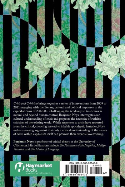 Crisis and Criticism brings together a series of interventions from 2009 to 2021 engaging with the literary, cultural and political responses to the capitalist crisis of 2007-8. Challenging the tendency to treat crisis as natural and beyond human control, Benjamin Noys interrogates our cultural understanding of crisis and suggests the necessity of ruthless criticism of the existing world. While responses to crisis have retreated from the critical, choosing to inhabit apocalyptic fantasies instead, Noys makes a rousing argument that only a critical understanding of the causes of crisis within capitalism itself can promise their eventual overcoming.