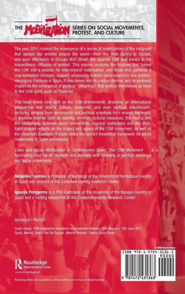 The year 2011 marked the emergence of a series of mobilizations of the indignant that spread like wildfire around the world-from the Arab Spring to Europe, and soon afterwards to Occupy Wall Street, the Spanish 15M was pivotal to the transnational diffusion of protest. This volume analyzes the features that turned the 15M into a beacon for international mobilization, and those that garnered it unprecedented domestic support, surpassing historic socio-economic and politico-ideological fractures in Spain. It also delves into its gradual demise, and its profound impact on the emergence of political "offsprings" that portray themselves as heirs to the 15M spirit, such as Podemos. This book sheds new light on the 15M phenomenon, providing an international perspective that rejects cultural, economic, and even political reductionism. Including insights from sociologists and political scientists from around the world, it explores themes such as identity, emotion, cultural resources, the media, and the relationship between social movements, regional institutions and the state. Each chapter reflects on the impact and legacy of the 15M movement, as well as the important questions it raises about the current theoretical framework for social movements in Spain and beyond. Crisis and Social Mobilization in Contemporary Spain: The 15M Movement is a fascinating read for all students and scholars with interests in political sociology and social movements.