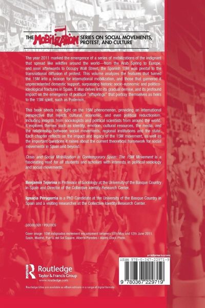 The year 2011 marked the emergence of a series of mobilizations of the indignant that spread like wildfire around the world-from the Arab Spring to Europe, and soon afterwards to Occupy Wall Street, the Spanish 15M was pivotal to the transnational diffusion of protest. This volume analyzes the features that turned the 15M into a beacon for international mobilization, and those that garnered it unprecedented domestic support, surpassing historic socio-economic and politico-ideological fractures in Spain. It also delves into its gradual demise, and its profound impact on the emergence of political "offsprings" that portray themselves as heirs to the 15M spirit, such as Podemos. This book sheds new light on the 15M phenomenon, providing an international perspective that rejects cultural, economic, and even political reductionism. Including insights from sociologists and political scientists from around the world, it explores themes such as identity, emotion, cultural resources, the media, and the relationship between social movements, regional institutions and the state. Each chapter reflects on the impact and legacy of the 15M movement, as well as the important questions it raises about the current theoretical framework for social movements in Spain and beyond. Crisis and Social Mobilization in Contemporary Spain: The 15M Movement is a fascinating read for all students and scholars with interests in political sociology and social movements.